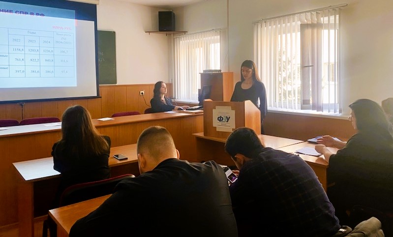 - Аида Малкандуева выступила с докладом на тему: «Агропромышленный комплекс, его роль и особенности функционирования».
