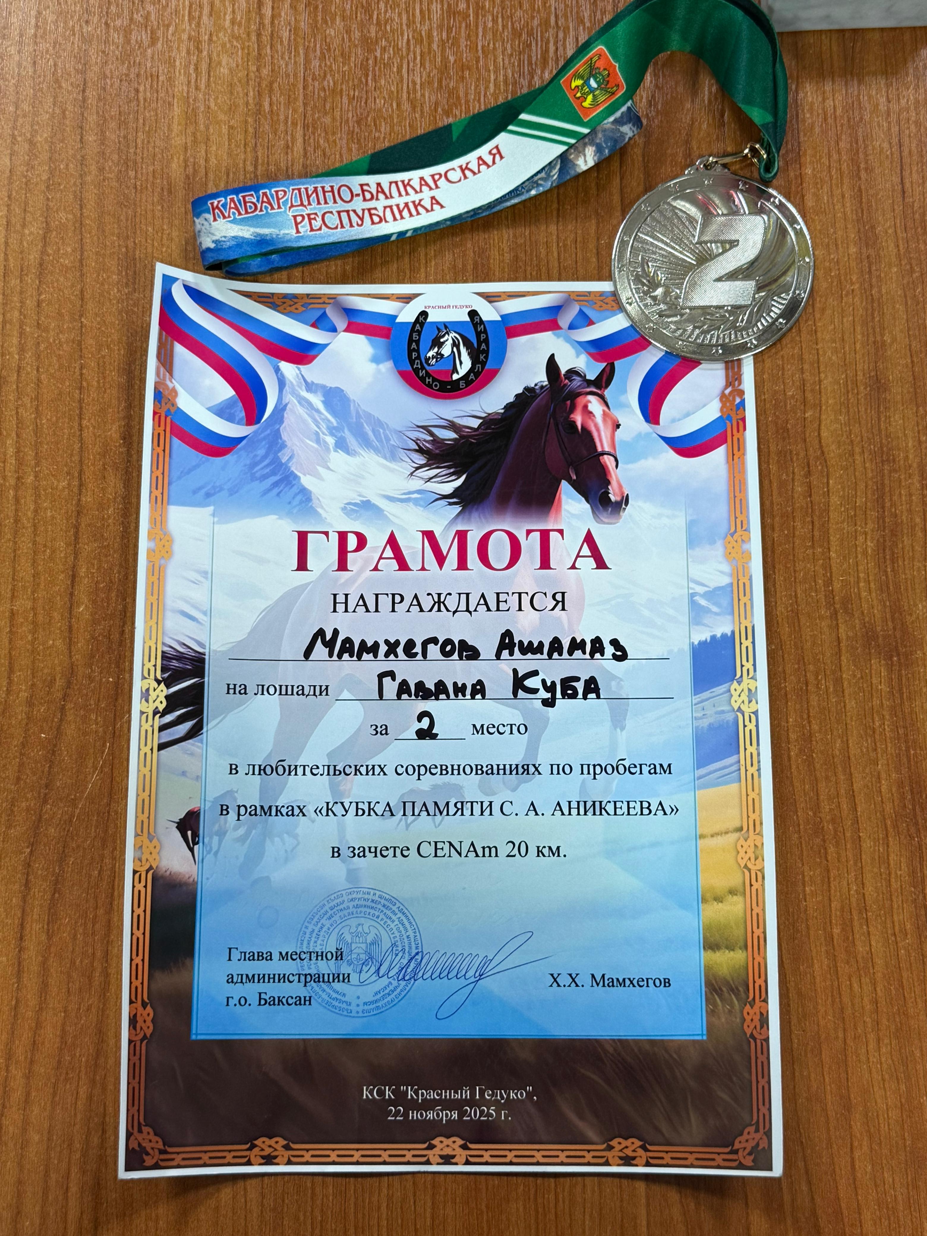 Студент 2 курса направления подготовки «Экономика» факультета экономики и управления нашего вуза Ашамаз Мамхегов продемонстрировал выдающиеся спортивные достижения, завоевав 2 место в любительских соревнованиях по конным пробегам памяти Сергея Аникеева.