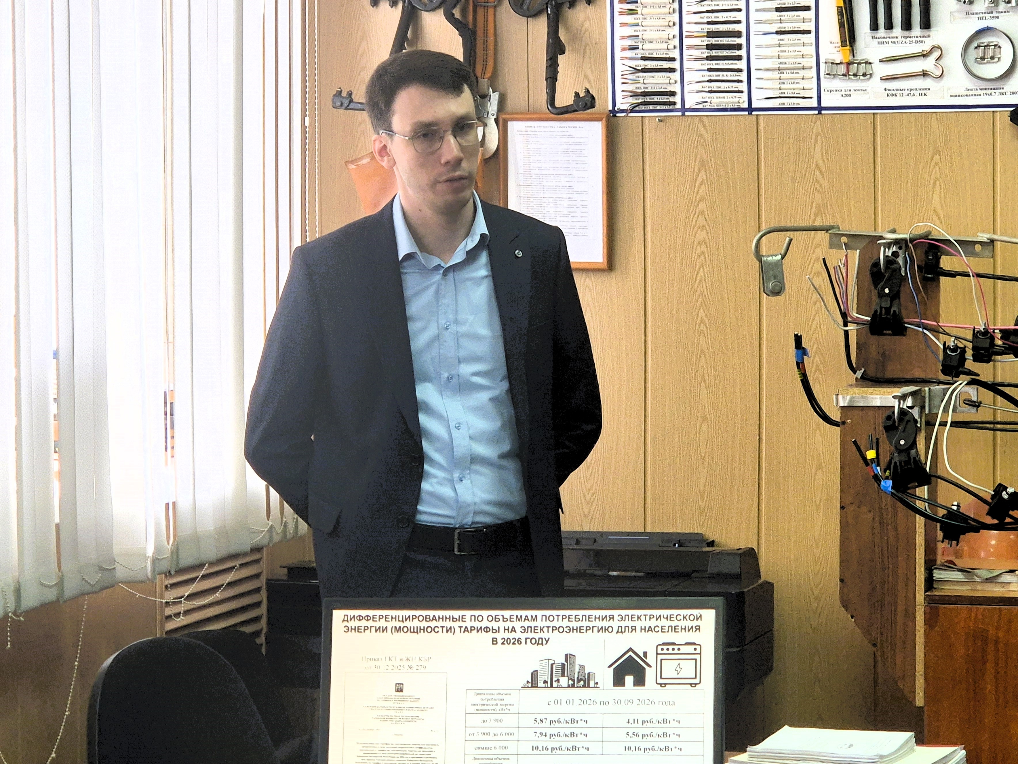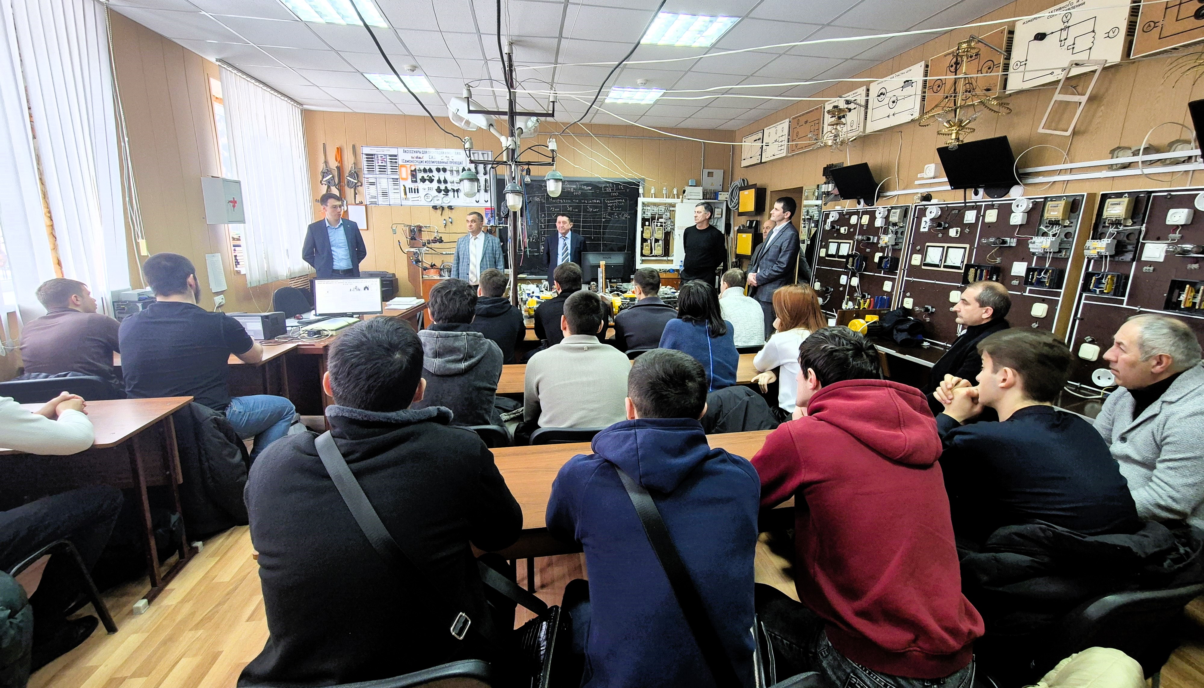 Участниками встречи стали: заместитель начальника отдела ценообразования в электроэнергетике государственного комитета по тарифам и жилищному надзору КБР Анатолий Шуков, преподаватели кафедры энергообеспечения предприятий, обучающиеся 4 курса направления подготовки «Теплоэнергетика и теплотехника» и студенты специальности среднего профессионального образования «Электротехнические системы в агропромышленном комплексе (АПК)».