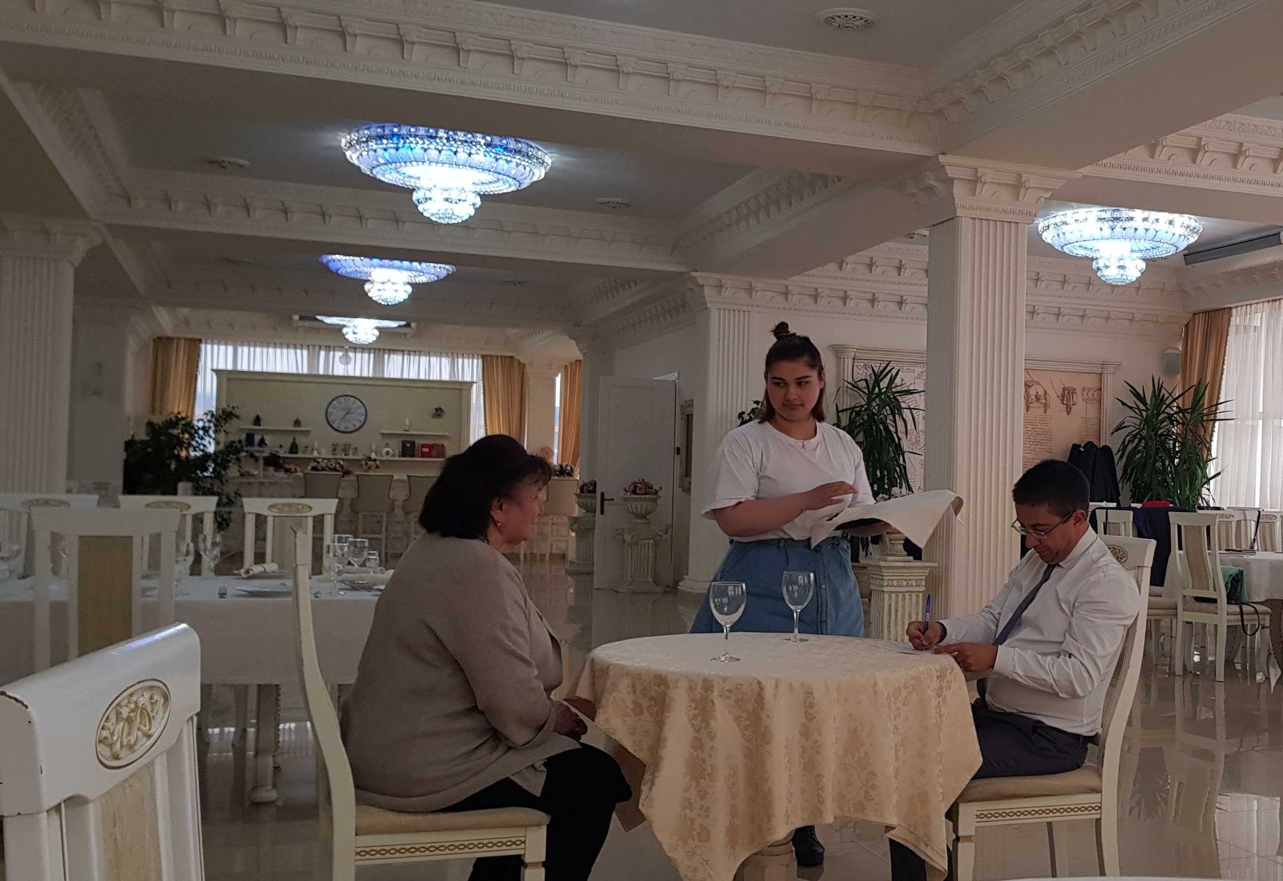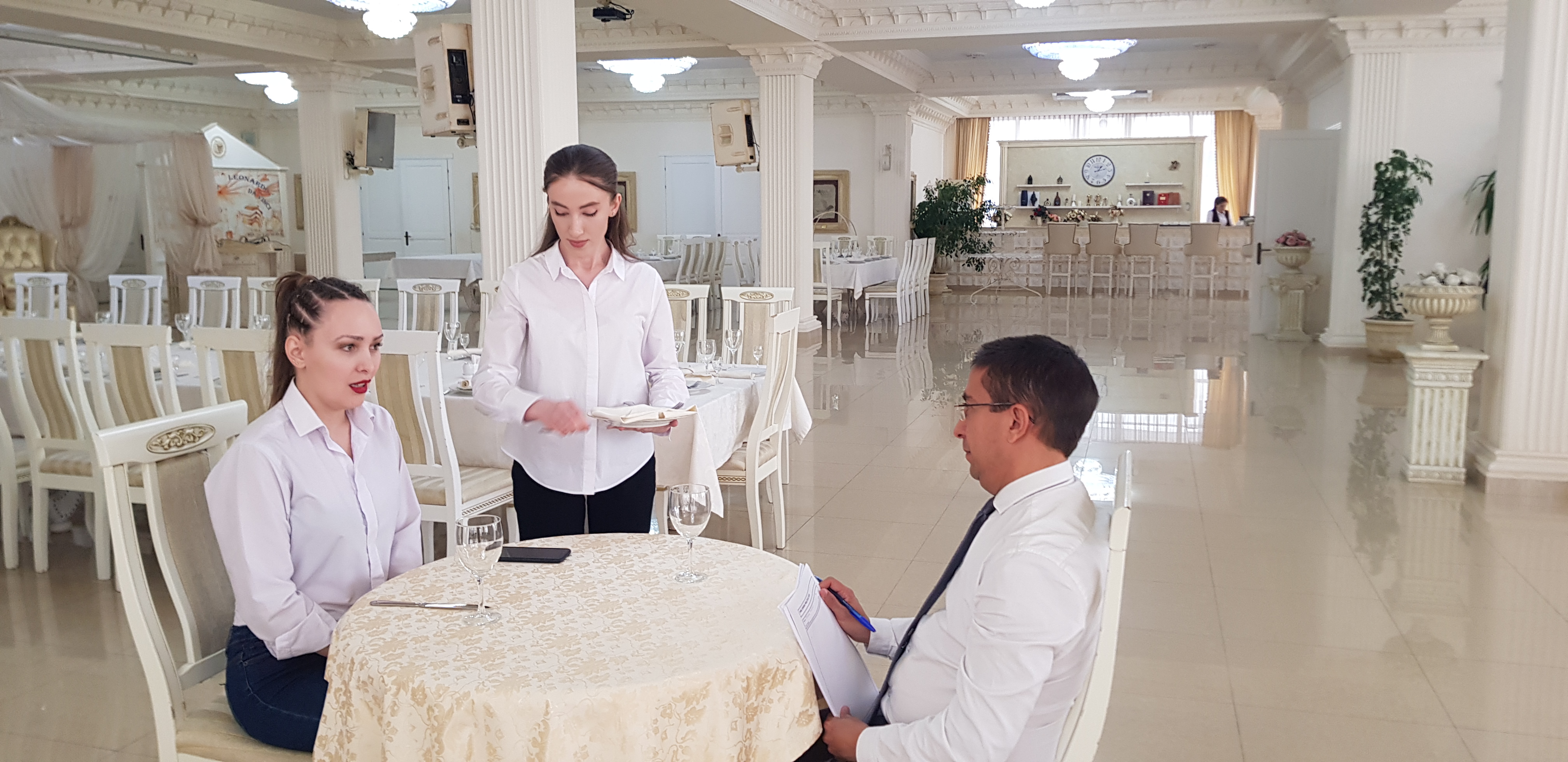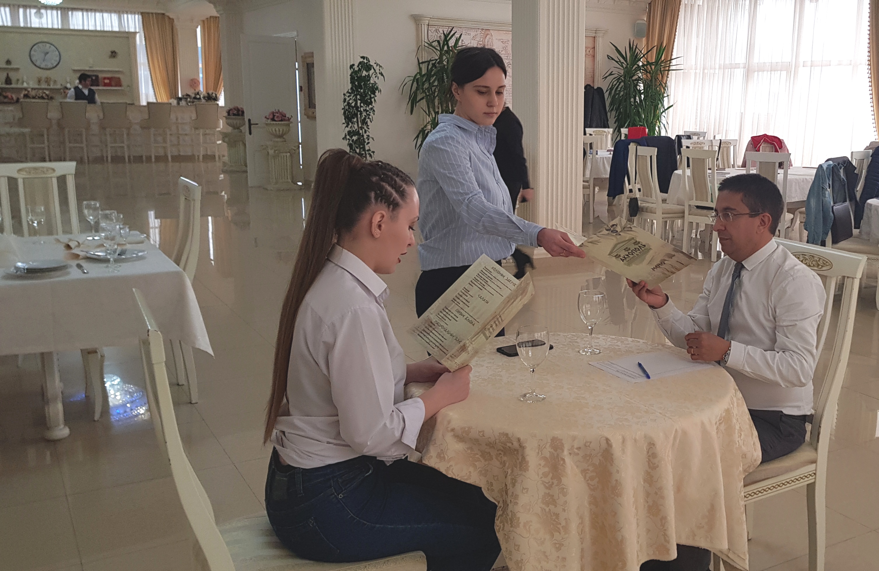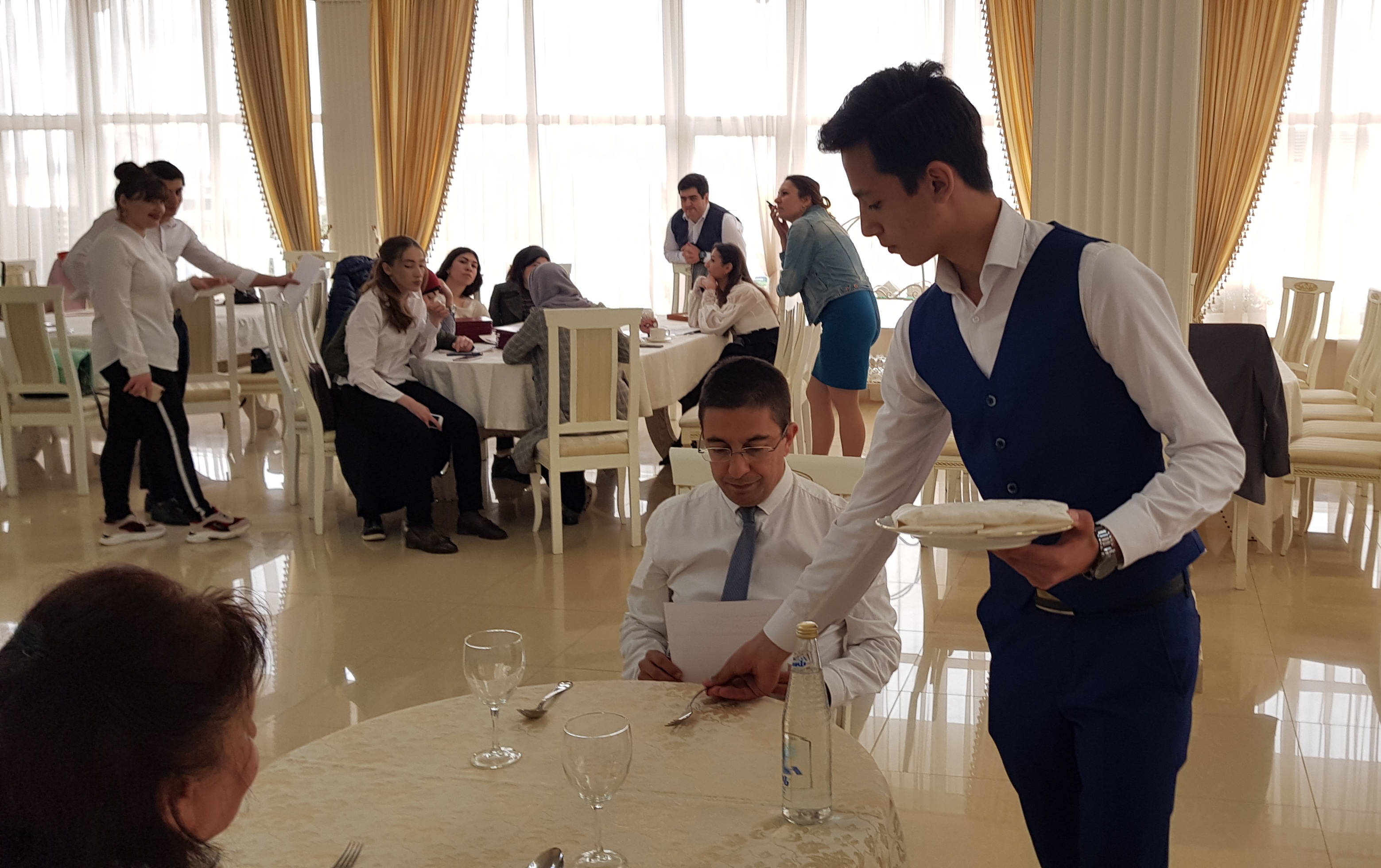 В начале курсов в ресторане «Синдика» соискателям рассказали о том, что такое этика сервиса в ресторанном и гостиничном бизнесе, как организовать структуру персонала и какое оборудование соответствует мировому уровню.