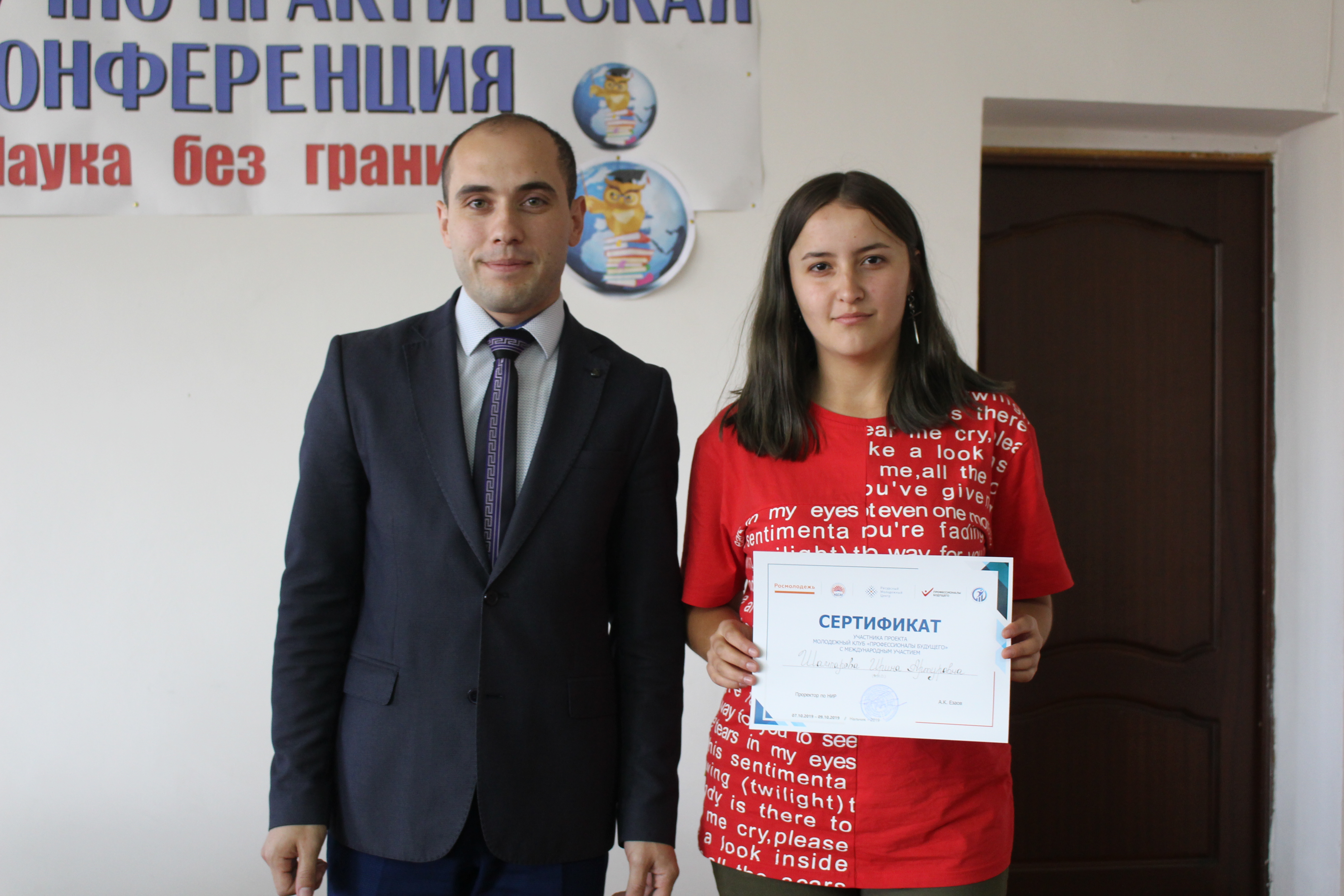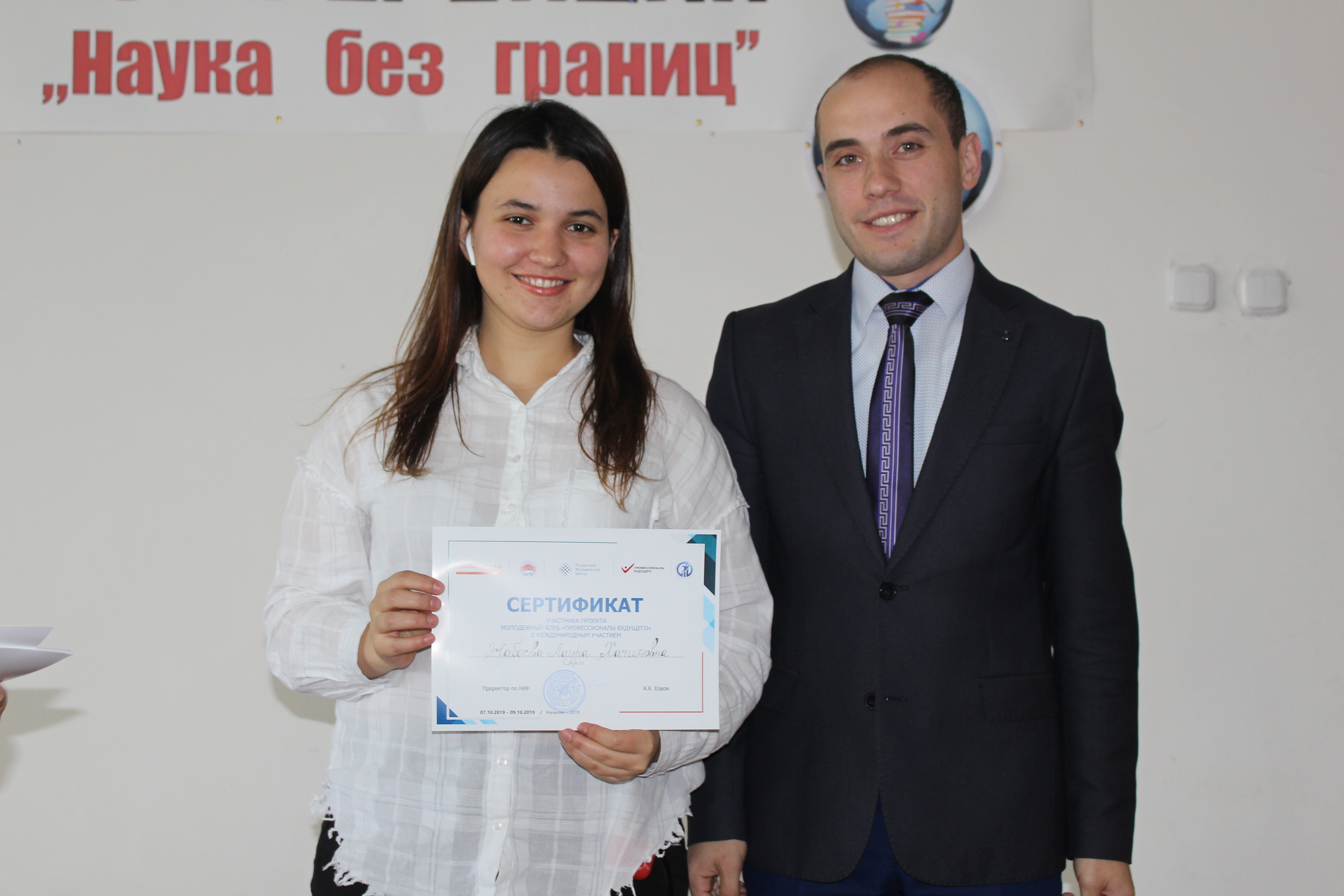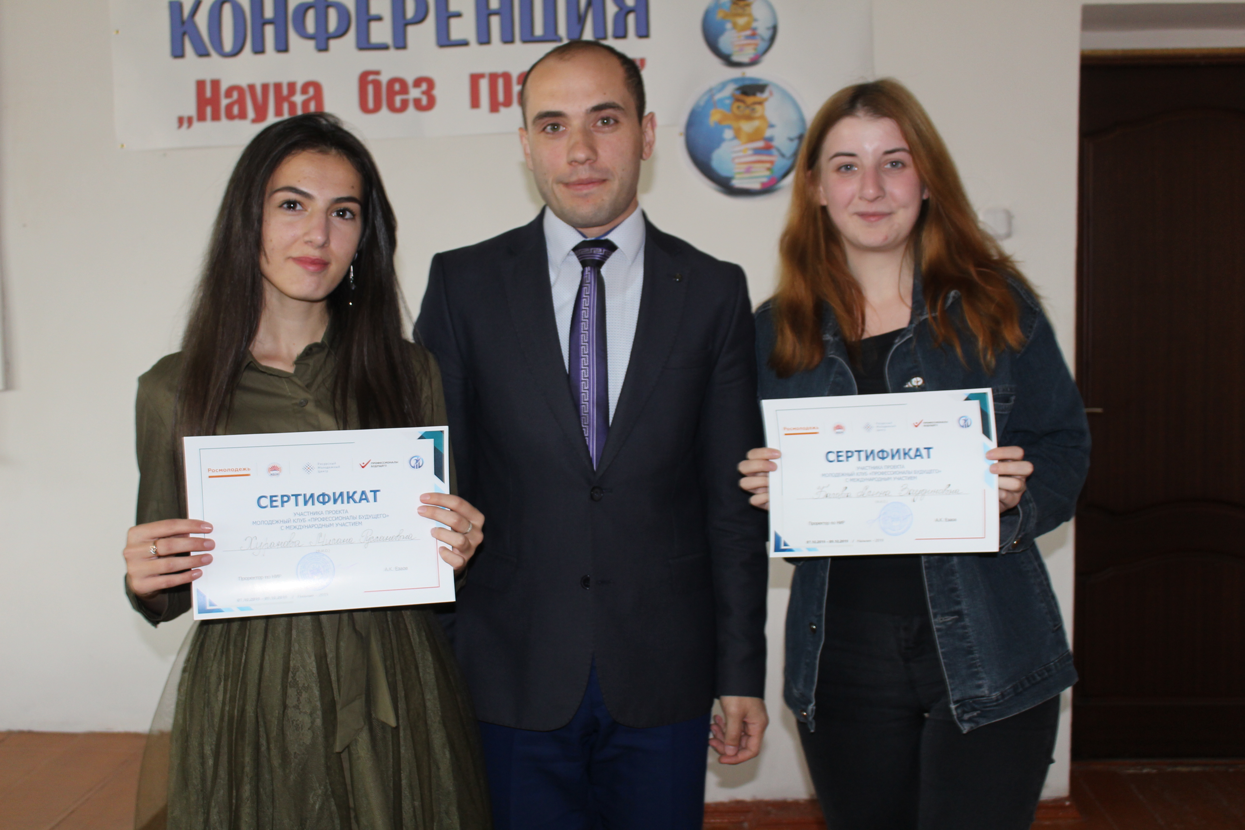 21 октября состоялось торжественное вручение сертификатов участникам проектов Кабардино-Балкарского ГАУ «Молодёжный клуб «Профессионалы будущего» с международным участием» и «Молодёжный кинофестиваль «Мир глазами молодёжи», поддержанных грантами Федерального агентства по делам молодёжи (Росмолодёжь).