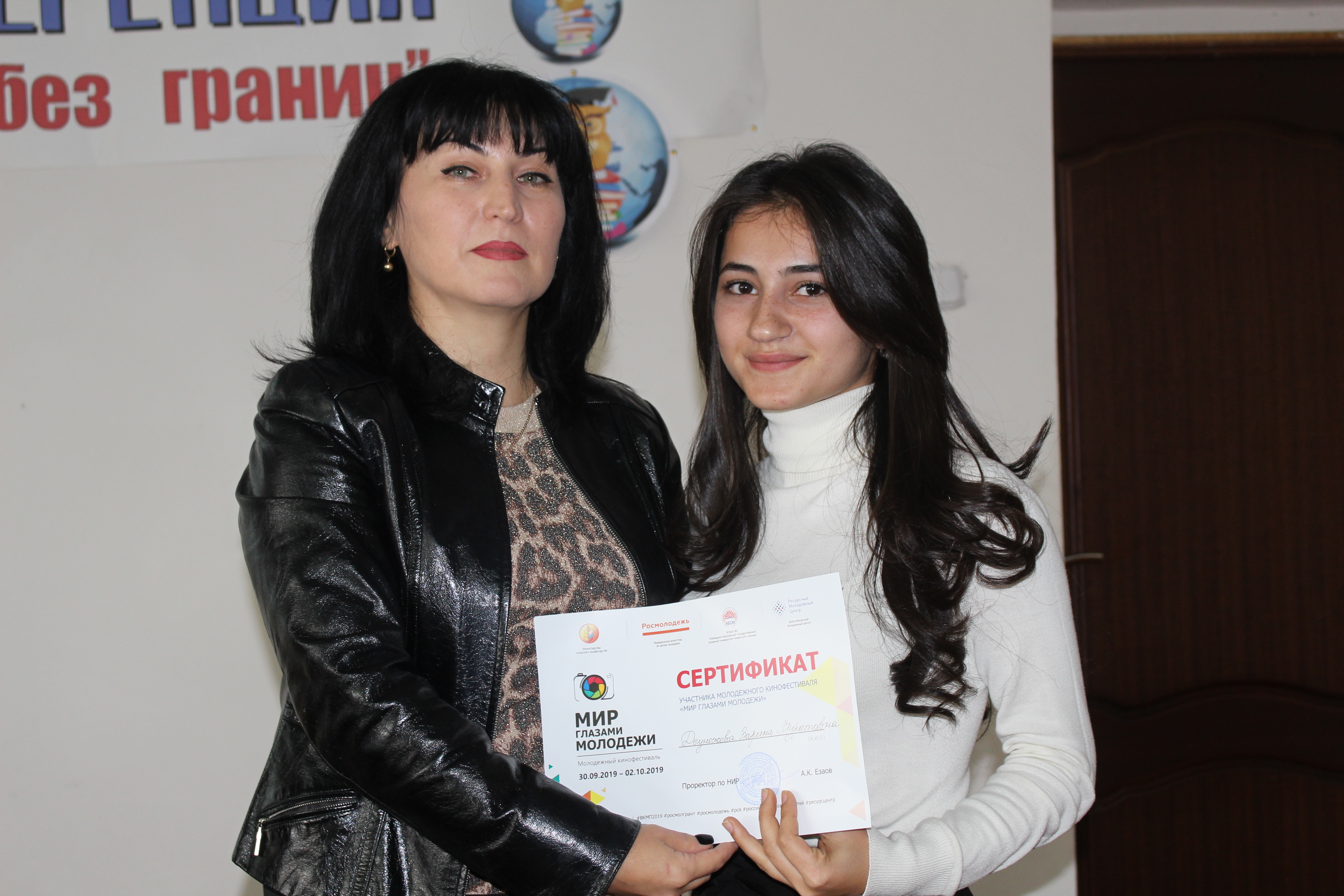 Участникам кинофестиваля «Мир глазами молодёжи» сертификаты вручила руководитель пресс-службы Кабардино-Балкарского ГАУ Зарема Курашинова.