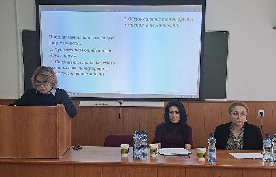 Организаторы круглого стола - доценты кафедры Равида Каирова, Хауа Курданова, модератор - доцент Хауа Курданова.
