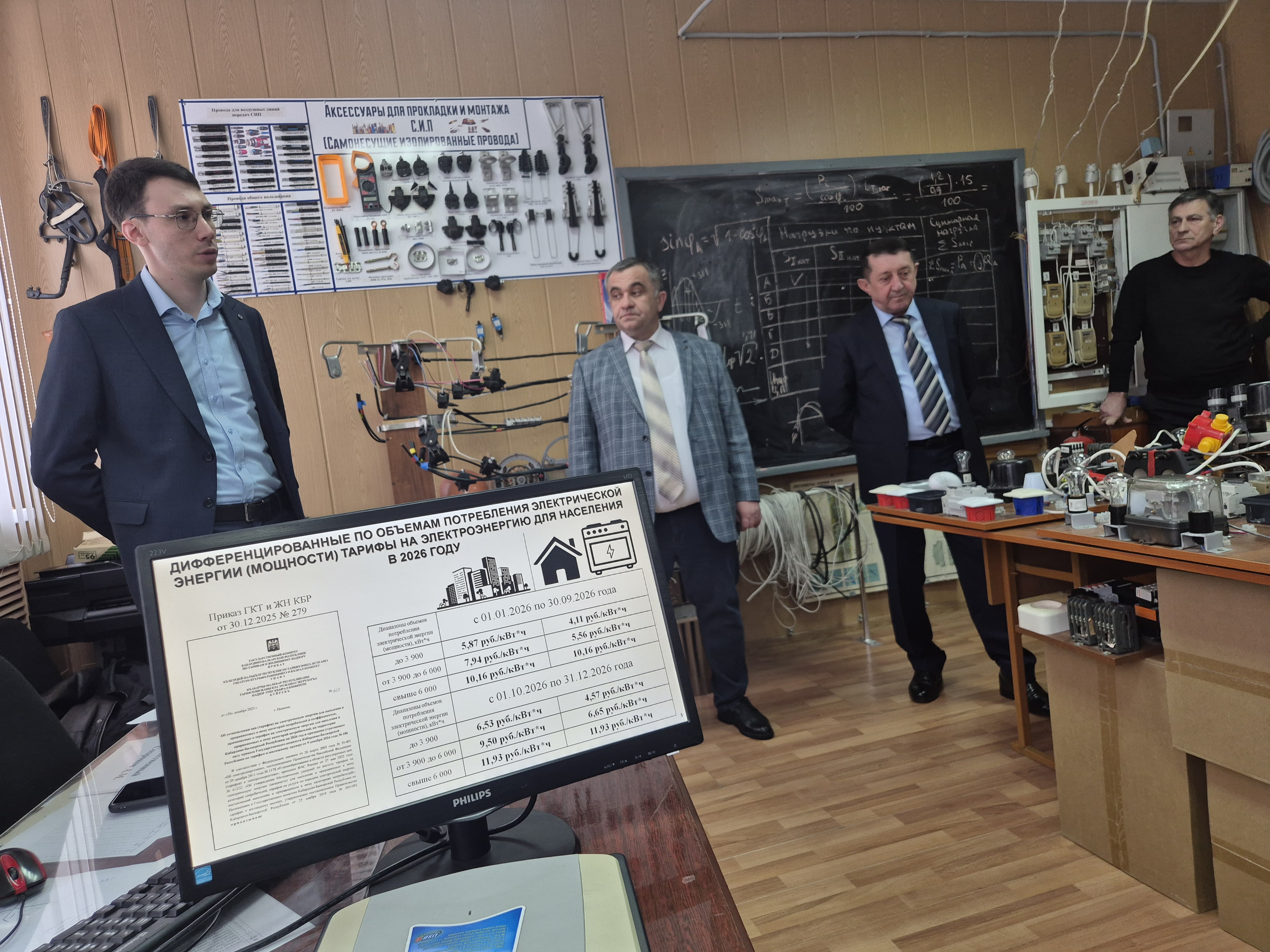 Участниками встречи стали: заместитель начальника отдела ценообразования в электроэнергетике государственного комитета по тарифам и жилищному надзору КБР Анатолий Шуков, преподаватели кафедры энергообеспечения предприятий, обучающиеся 4 курса направления подготовки «Теплоэнергетика и теплотехника» и студенты специальности среднего профессионального образования «Электротехнические системы в агропромышленном комплексе (АПК)».