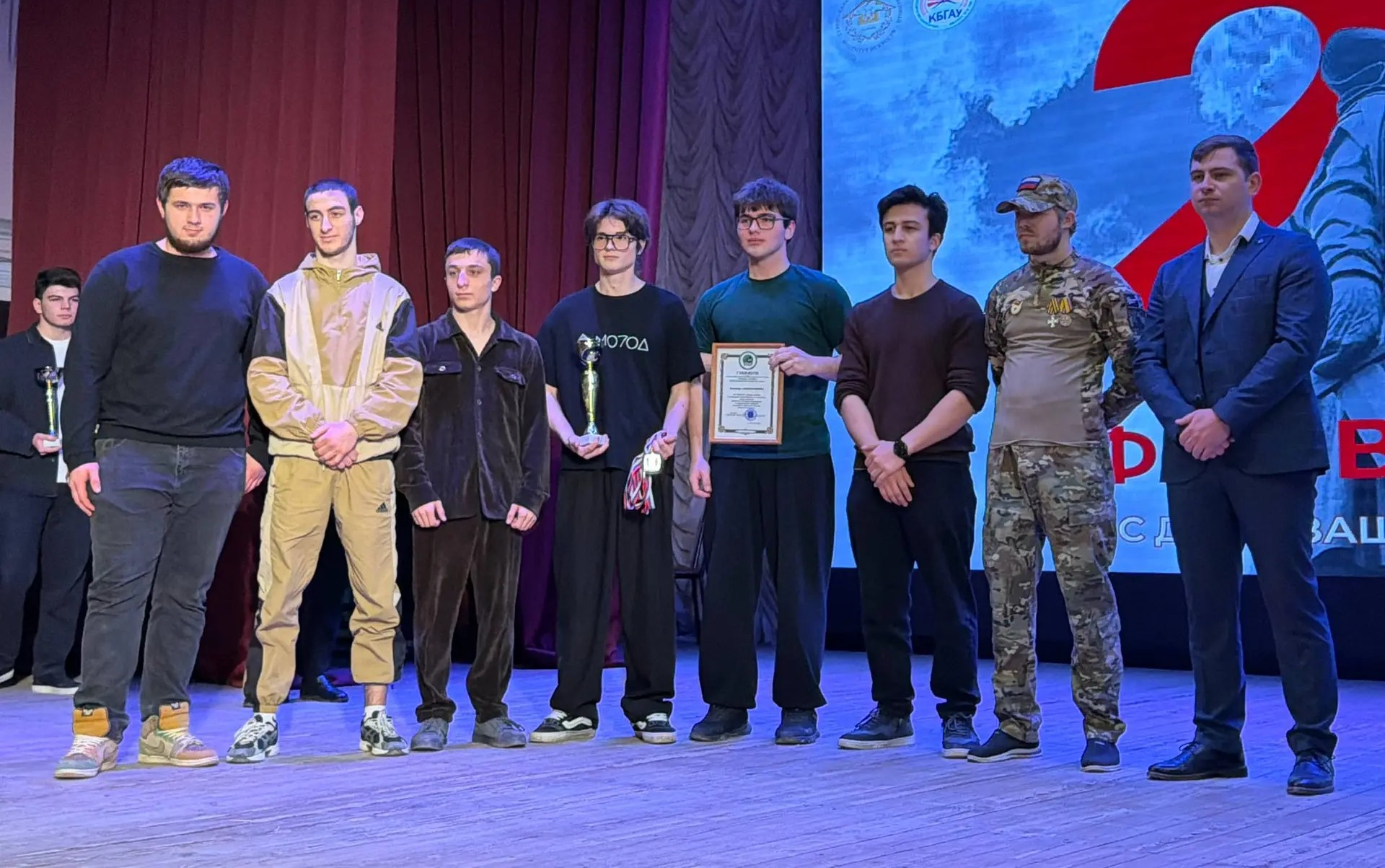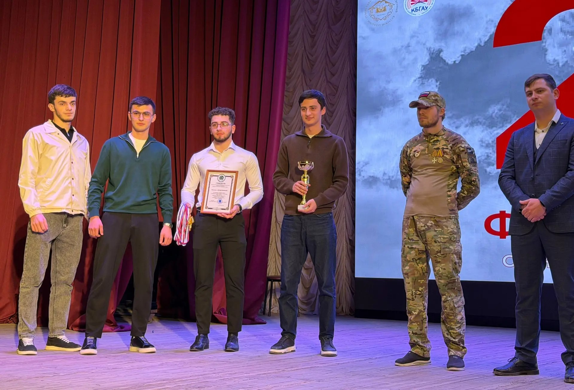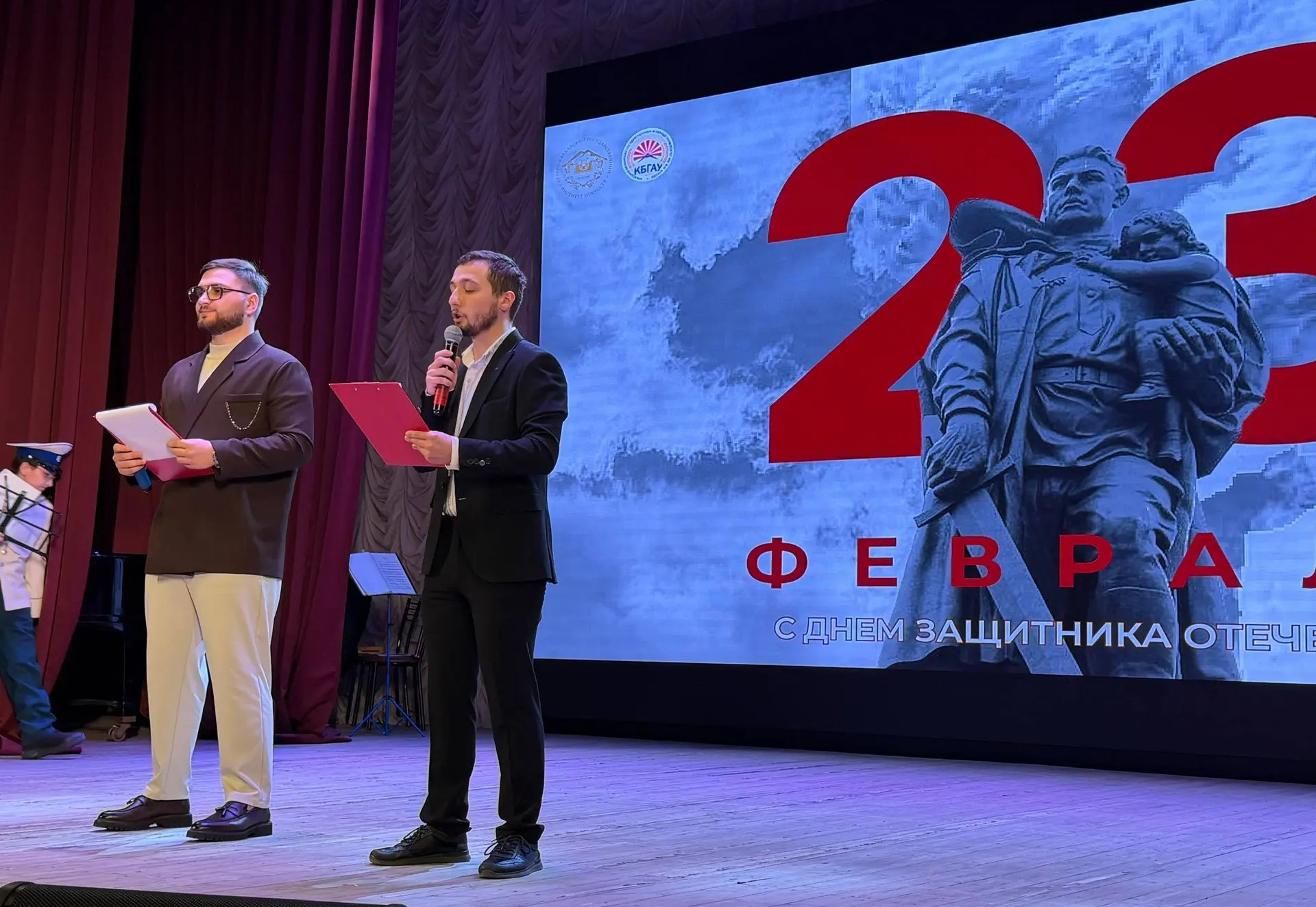 В конце минувшей недели в актовом зале Северо-Кавказского государственного института искусств состоялся совместный праздничный концерт, объединивший студентов и преподавателей двух ведущих вузов республики: СКГИИ и Кабардино-Балкарского государственного аграрного университета имени В.М. Кокова. Мероприятие было приурочено к предстоящему Дню защитника Отечества.