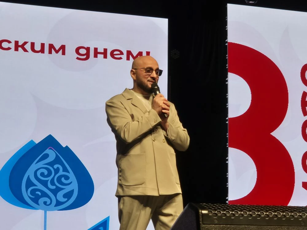 Ведущие вечера – Салим Гучаев и Милана Бишенова – задали тон празднику, начав с остроумного и трогательного диалога о том, как следует поздравлять женщин. Их добрый юмор мгновенно создали в зале особую, тёплую атмосферу.