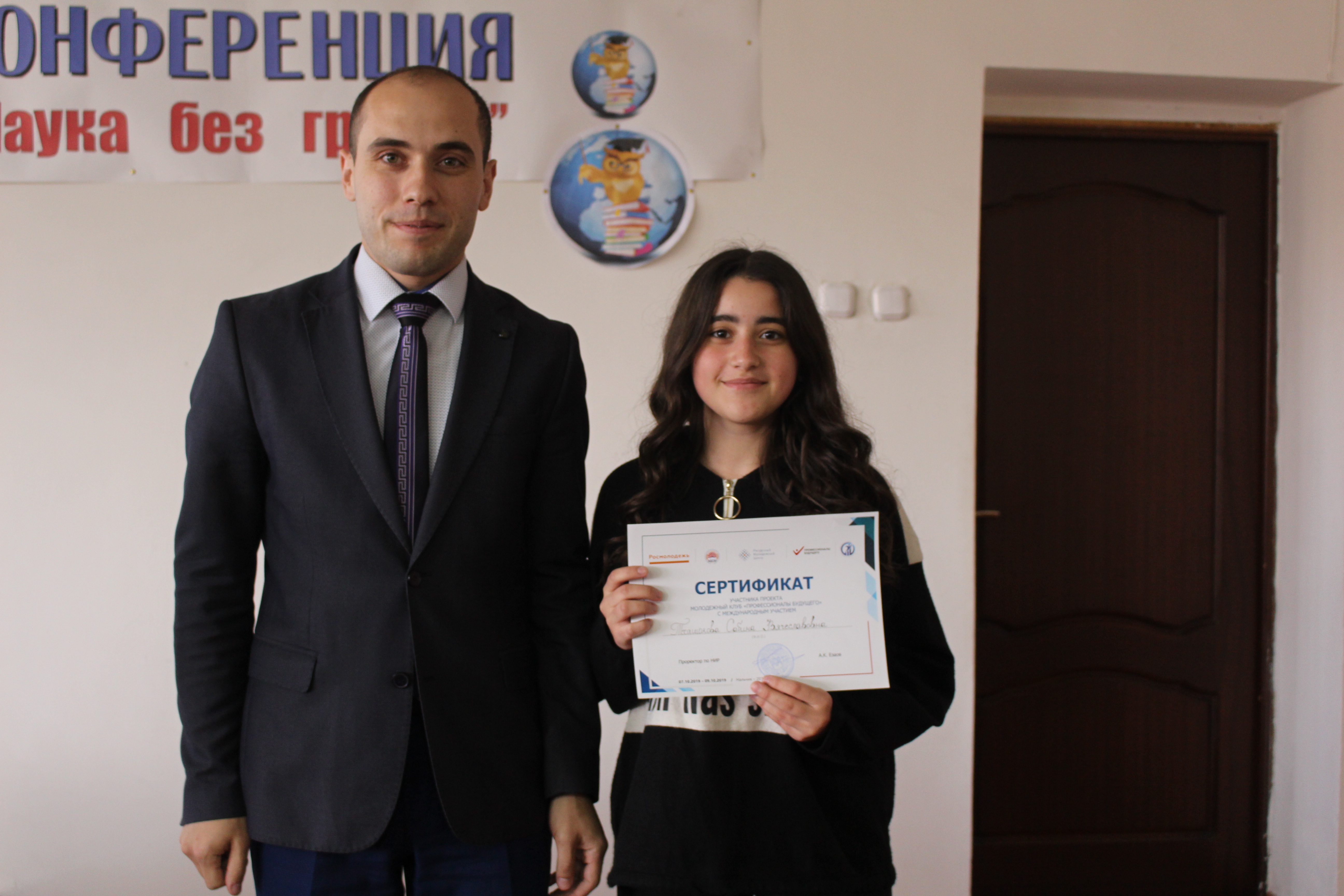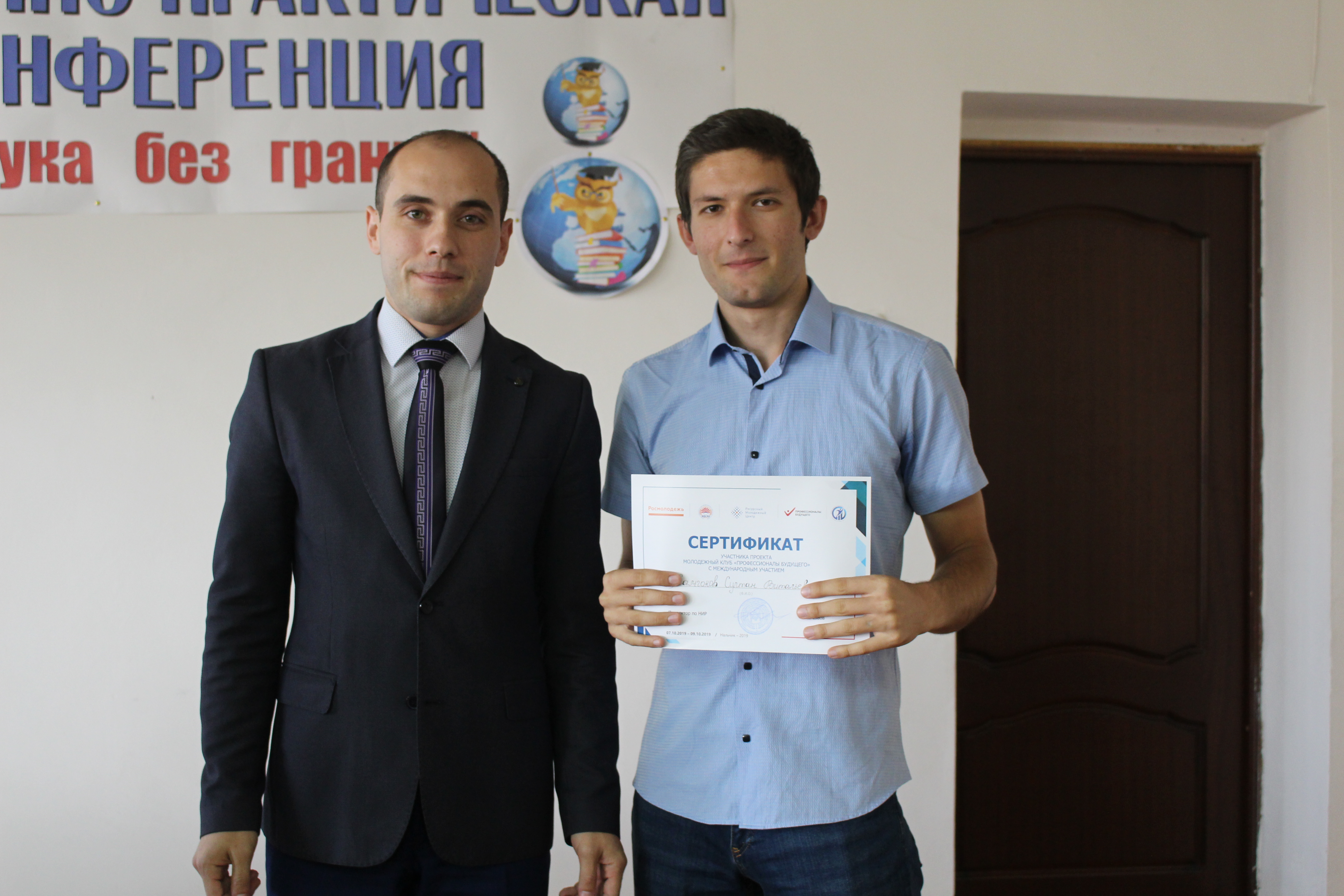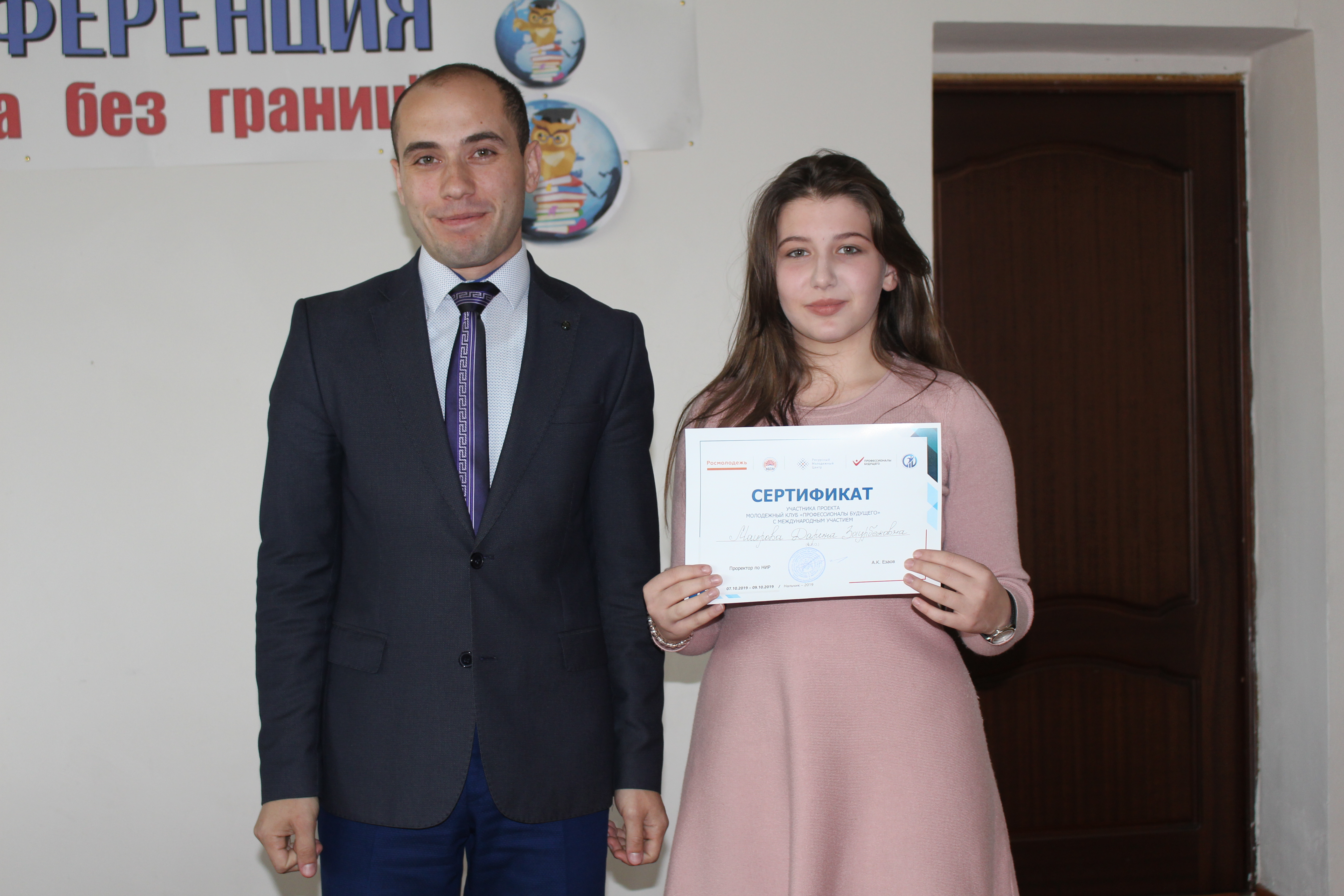 21 октября состоялось торжественное вручение сертификатов участникам проектов Кабардино-Балкарского ГАУ «Молодёжный клуб «Профессионалы будущего» с международным участием» и «Молодёжный кинофестиваль «Мир глазами молодёжи», поддержанных грантами Федерального агентства по делам молодёжи (Росмолодёжь).
