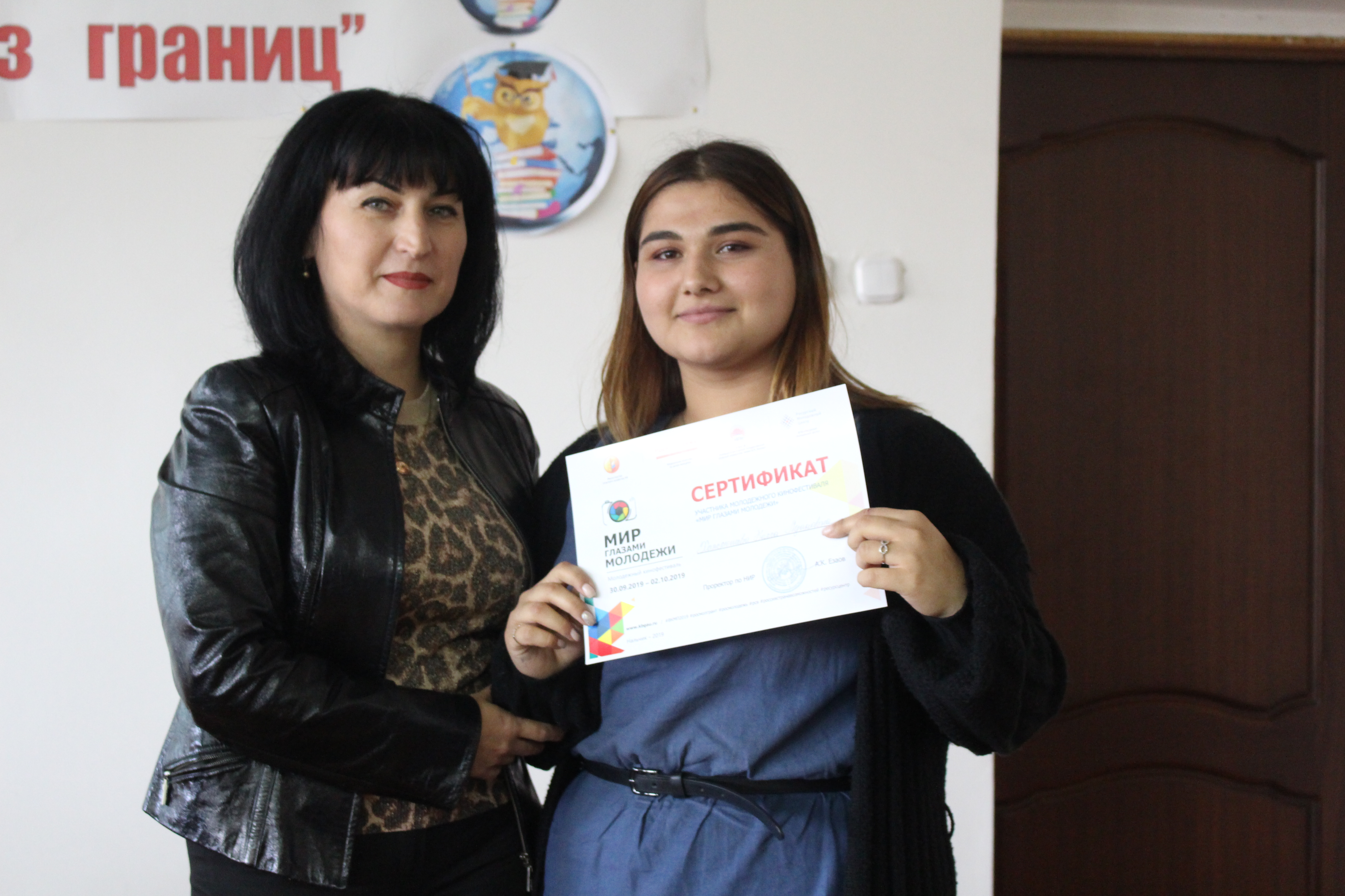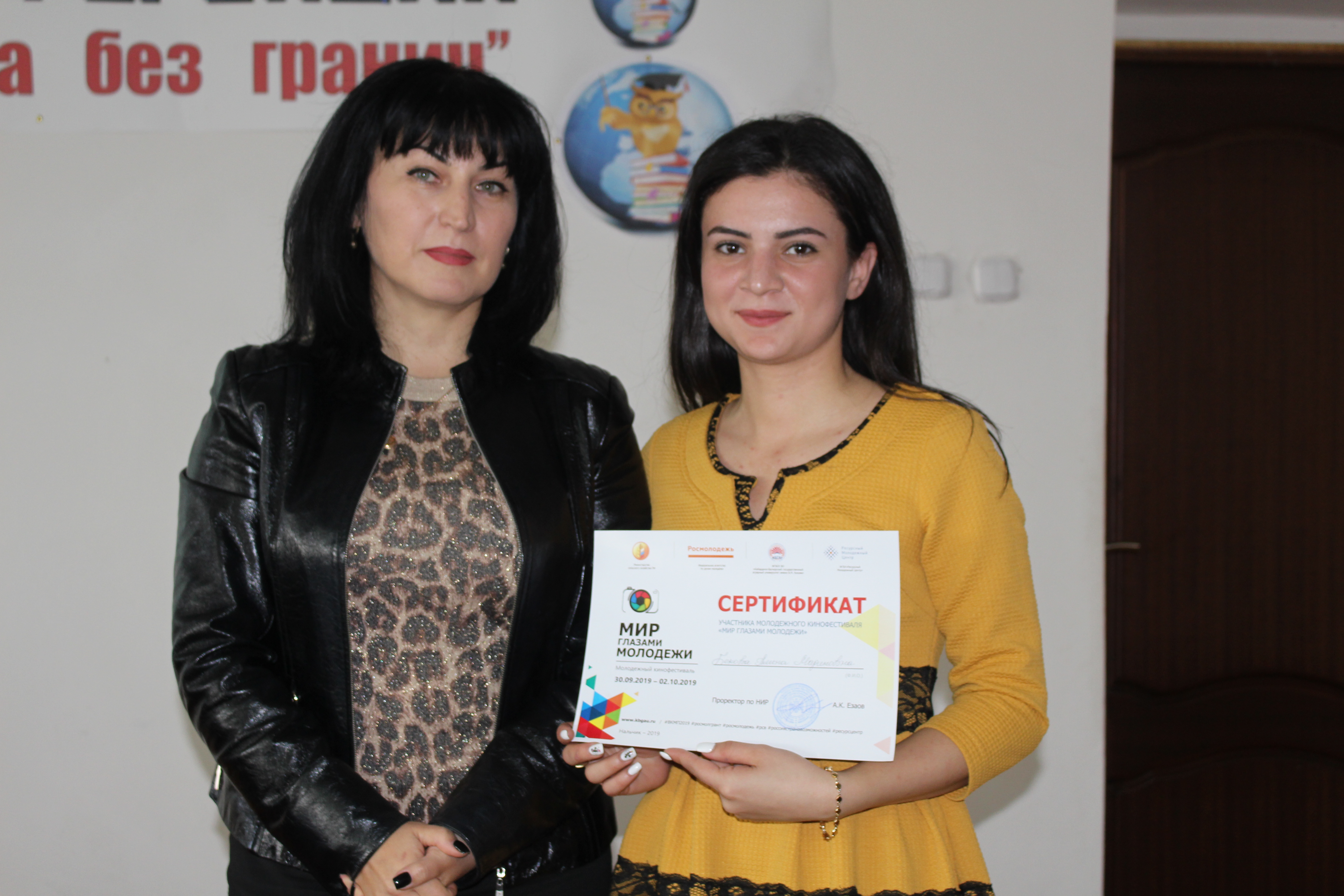 Участникам кинофестиваля «Мир глазами молодёжи» сертификаты вручила руководитель пресс-службы Кабардино-Балкарского ГАУ Зарема Курашинова.