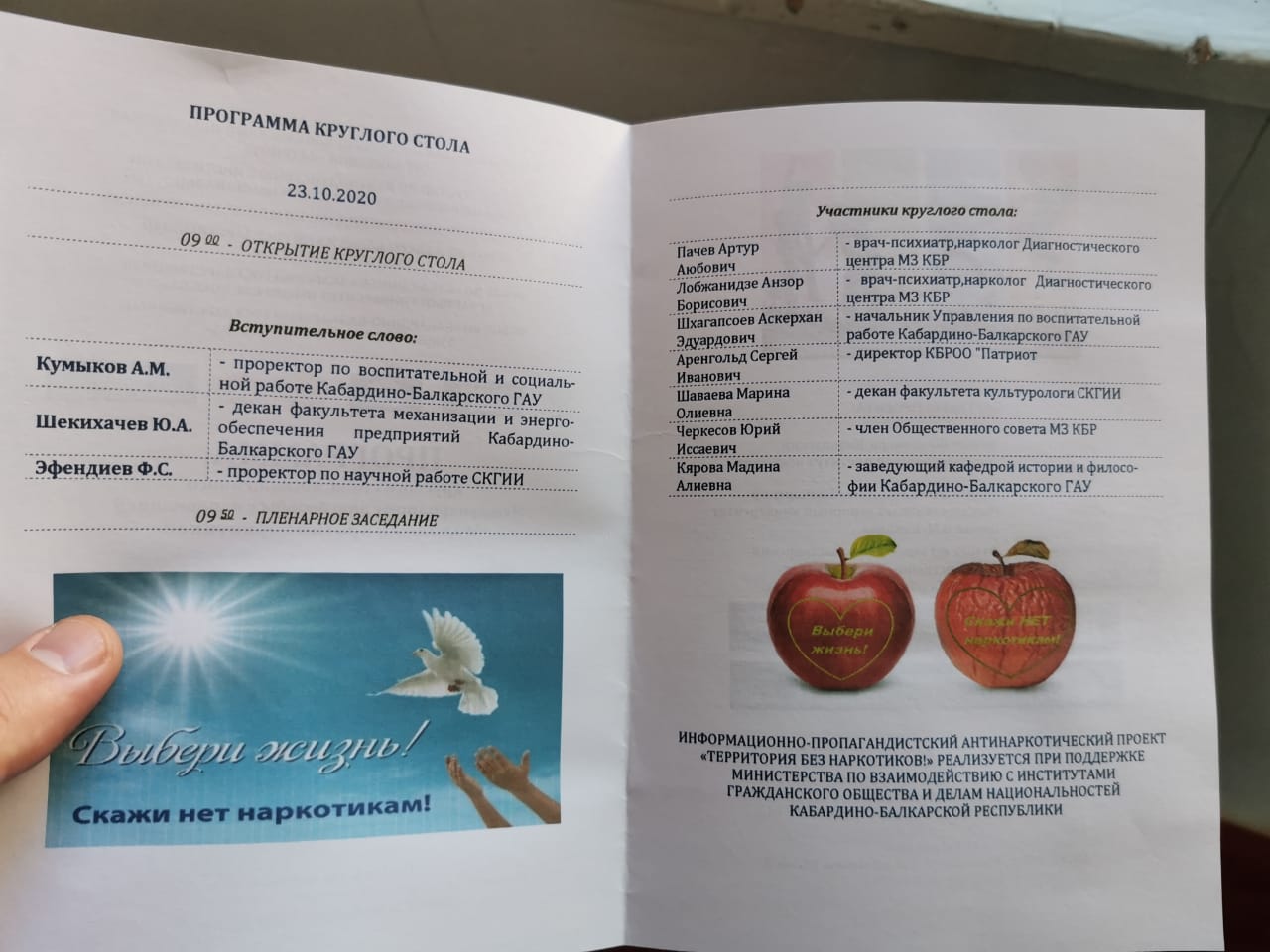 Беседу со студентами провели: проректор СКГИИ Фуад Эффендиев, нарколог Диагностического центра Минздрава КБР Артур Пачев, директор КБРОО «Патриот» Сергей Аренгольд, член Общественного совета Минздрава КБР Юрий Черкесов, руководитель управления по молодёжной политике Кабардино-Балкарского ГАУ Аскерхан Шхагапсоев.