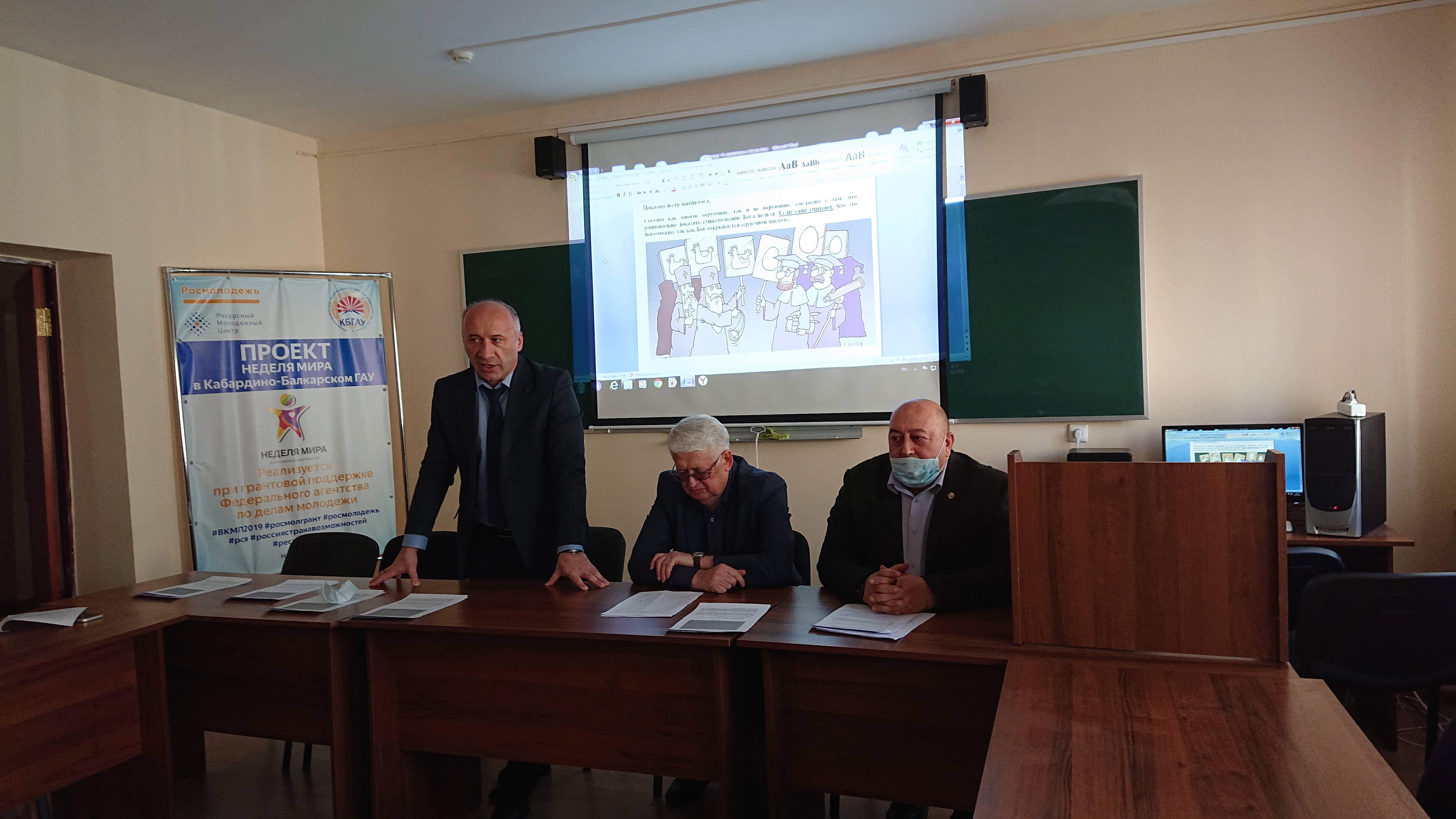 С содержательными докладами выступили профессора кафедры Алик Дадашев и Магомед Кучуков. А. Дадашев посвятил своё выступление противостоянию между религией и философией, доказательствам бытия Бона, основанным на современных научных достижениях. М. Кучуков рассмотрел современные проблемы развития философской науки, определил формы негативных результатов в развитии науки и техники.