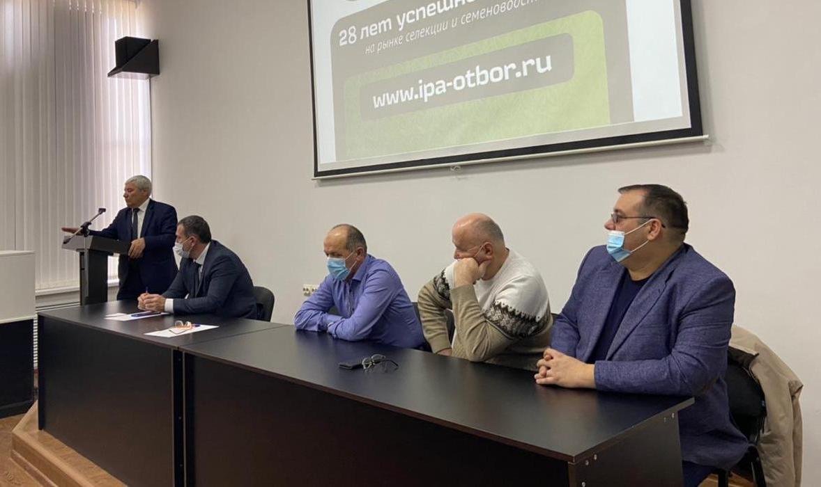 Гости мероприятия, генеральный директор фирмы Расул Князев и ведущий селекционер Юга России Руслан Абубекиров, выступили с докладами об успехах и проблемах селекции и семеноводства в масштабах России. Расул Азрет-Алиевич рассказал о коммерческой составляющей производства семенного материала и о проблемах, которые приходится решать при размножении сельскохозяйственных культур.