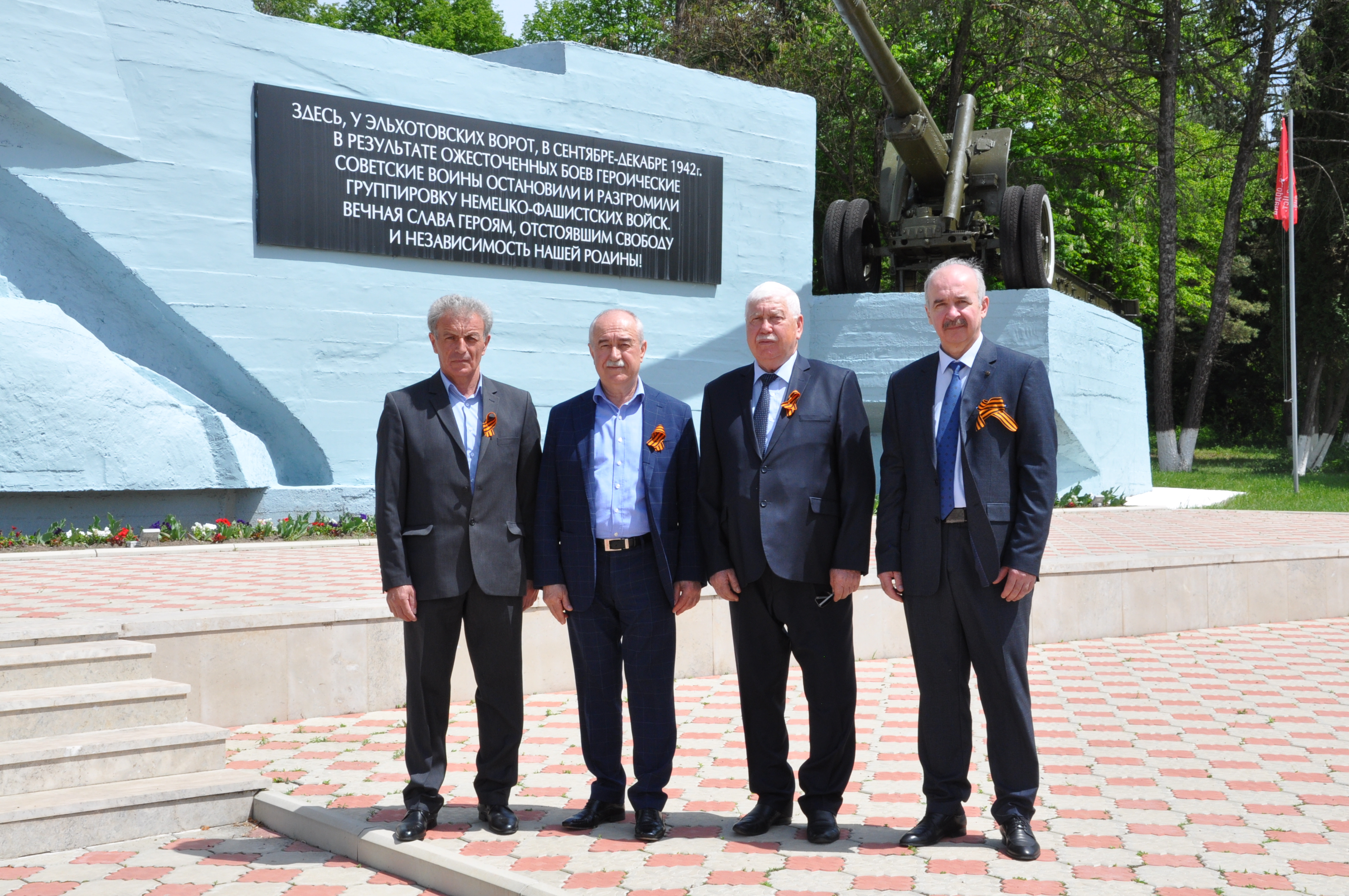 В преддверии праздника Великой Победы представители Кабардино-Балкарского ГАУ и Горского ГАУ во главе с ректорами Асланом Апажевым и Виктором Темираевым возложили цветы к монументу защитникам Эльхотовских ворот, расположенному в Кировском районе Республики Северная Осетия-Алания.