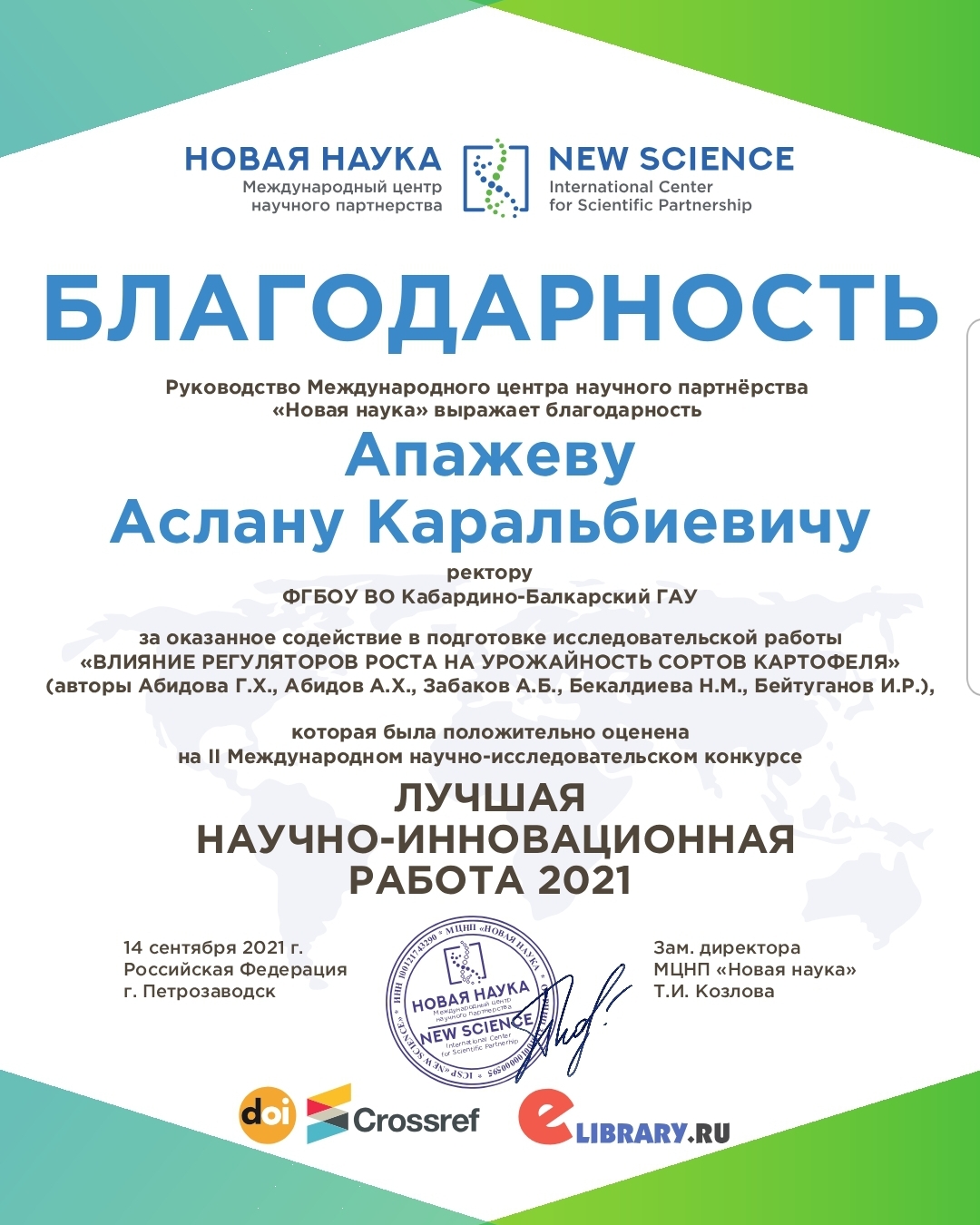 Обучающиеся агрономического факультета Кабардино-Балкарского ГАУ и школьники МКОУ УО «Успех» приняли совместное участие в Международном научно-исследовательском конкурсе «Лучшая научно-инновационная работа - 2021», проходившем в Петрозаводске. Ими были представлены три научно-исследовательские работы.