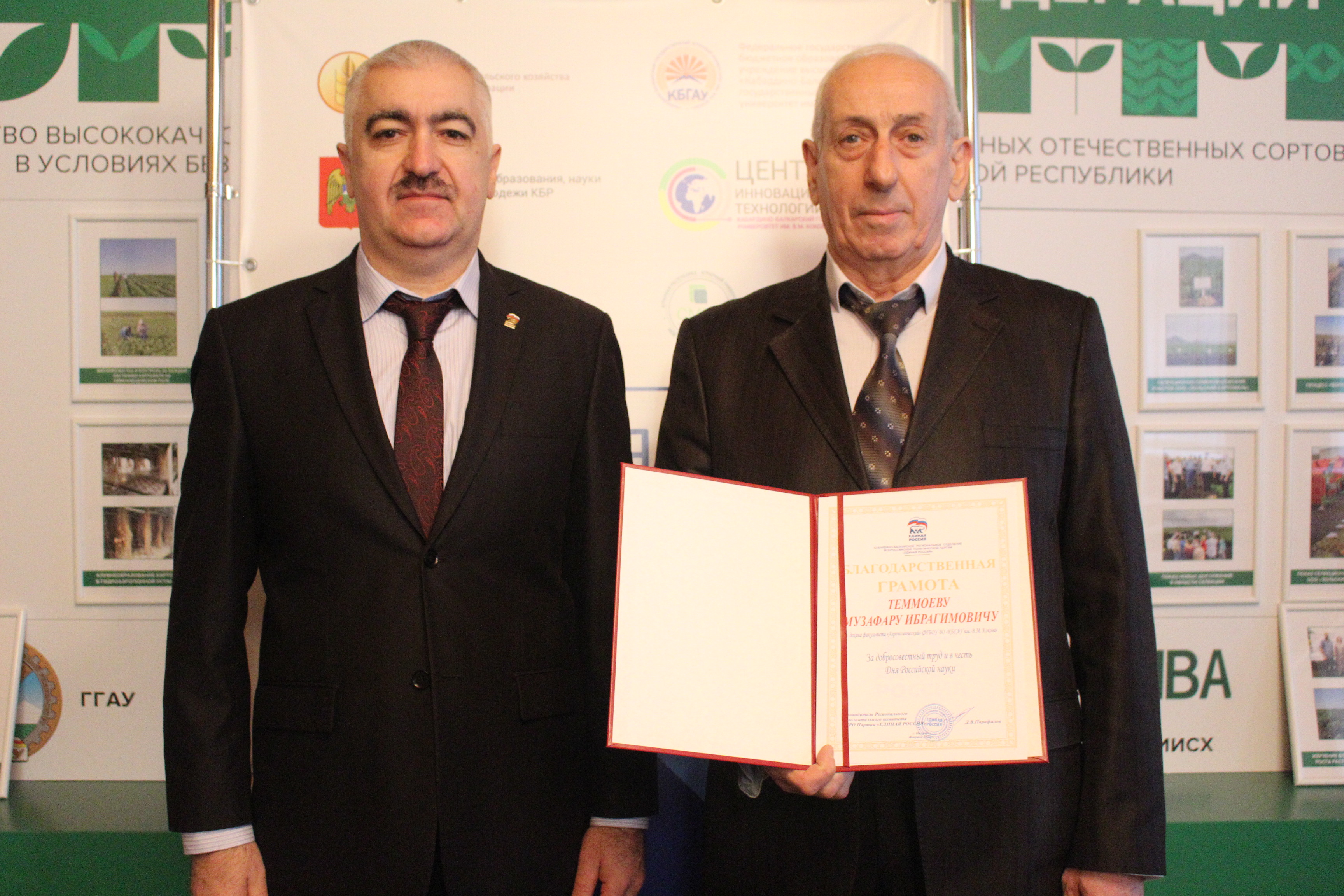За добросовестный труд и в честь Дня российской науки Благодарственной грамотой награждены исполняющий обязанности декана агрономического факультета Музафар Теммоев, заместитель декана по практическому обучению Беслан Бесланеев и завкафедрой «Садоводство и лесное дело» Хусен Назранов.