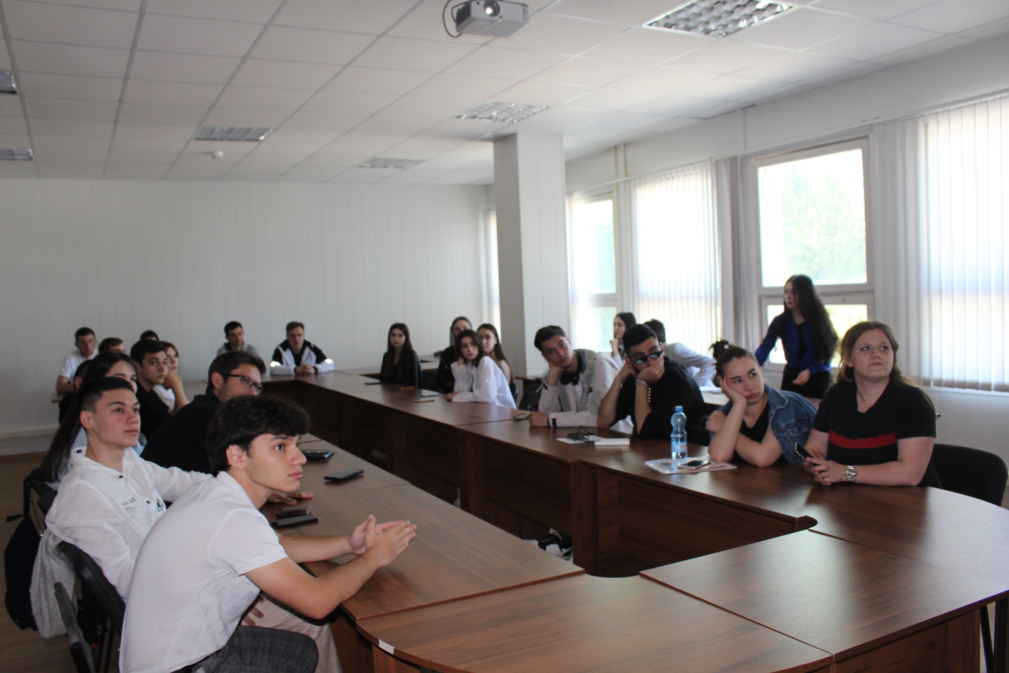 13 мая на факультете экономики и управления прошла встреча представителей студенческого актива с сотрудниками Многофункционального молодежного центра КБР, выпускниками Кабардино-Балкарского ГАУ Амирханом Амшоковым, Радимой Аслануковой и амбассадором проекта «Таврида» в КБР, председателем киноклуба КБГУ Алиной Коготыжевой.