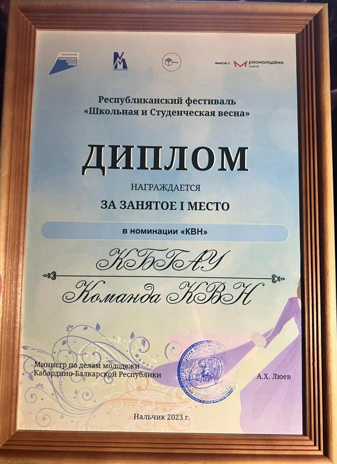 Блистательное выступление команды Кабардино-Балкарского ГАУ на Студенческой и школьной весне — три первых места и одно третье место в различных номинациях