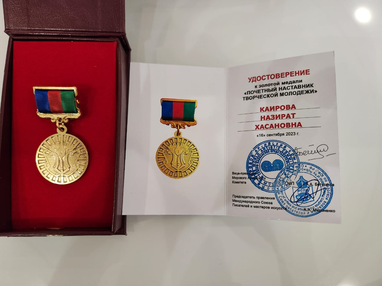 Назират Каирова получила золотую медаль «Почетный наставник творческой молодежи»