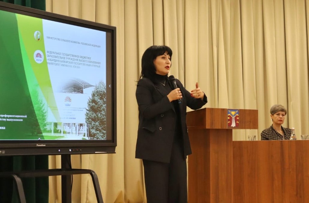 Представитель агровуза рассказала о возможностях, предоставляемых студентам, дала рекомендации по выбору предметов ЕГЭ, разъяснила алгоритм поступления на факультет СПО и осветила перспективы трудоустройства выпускников КБГАУ.