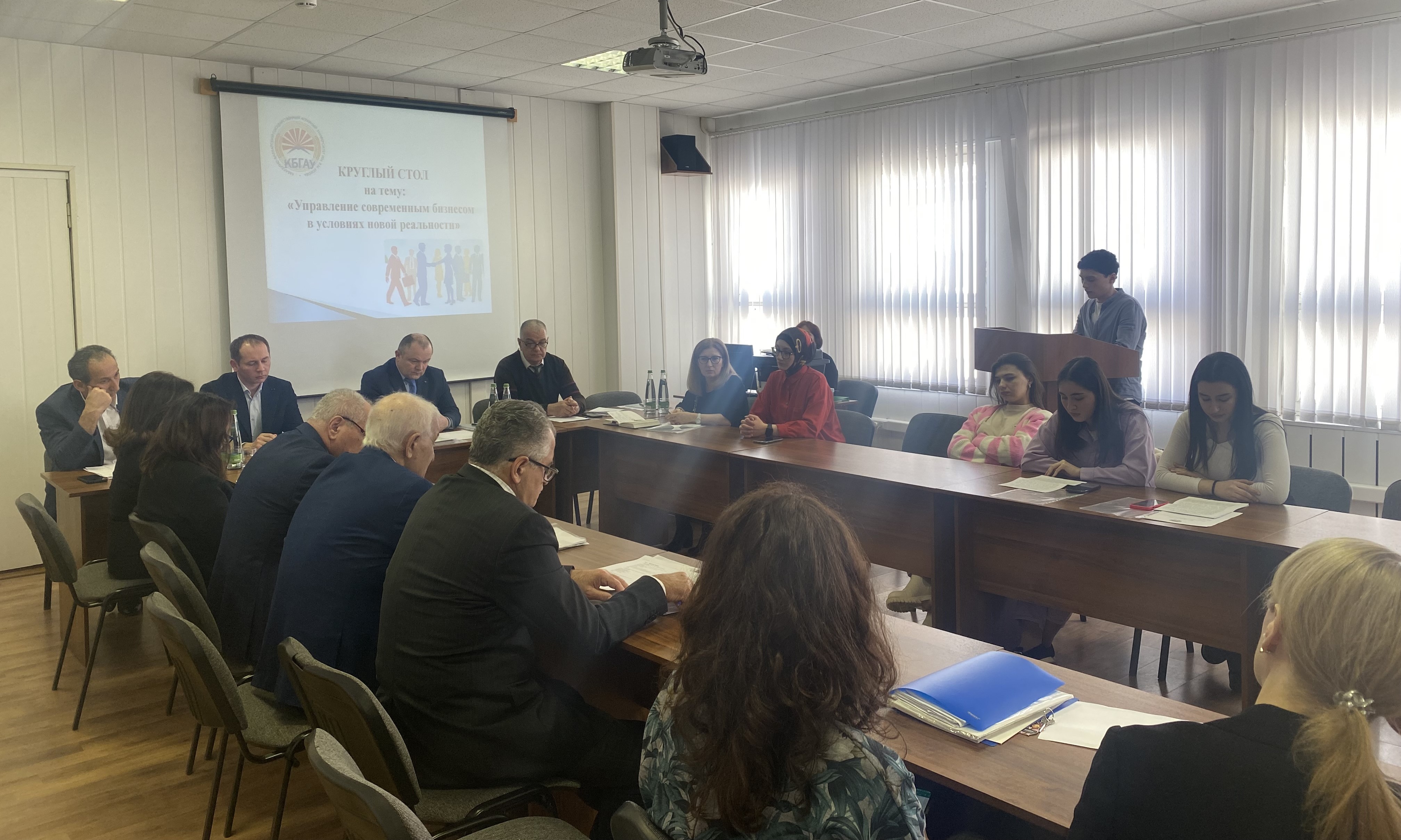 Участниками круглого стола стали: начальник отдела бухгалтерского учета, отчетности АПК Министерства сельского хозяйства КБР Алим Гергов, начальник научно-исследовательского сектора вуза Аслан Жемухов, декан факультета экономики и управления Гумар Бекаров, заведующий кафедрой «Управление» Эльдар Баккуев, а также преподаватели факультета и обучающиеся 2 курса направлений подготовки «Менеджмент» и «Государственное муниципальное управление».