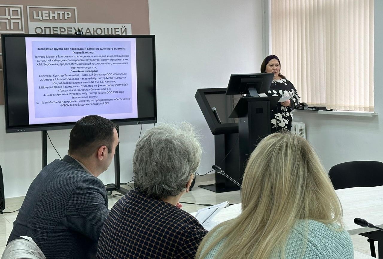 В мероприятии, прошедшем в рамках регионального этапа чемпионата по профессиональному мастерству, приняла участие преподаватель кафедры «Экономические дисциплины» факультета СПО Анжела Темрокова. Она выступила с докладом «Особенности организации и проведения демонстрационного экзамена в колледжах при высших учебных заведениях».