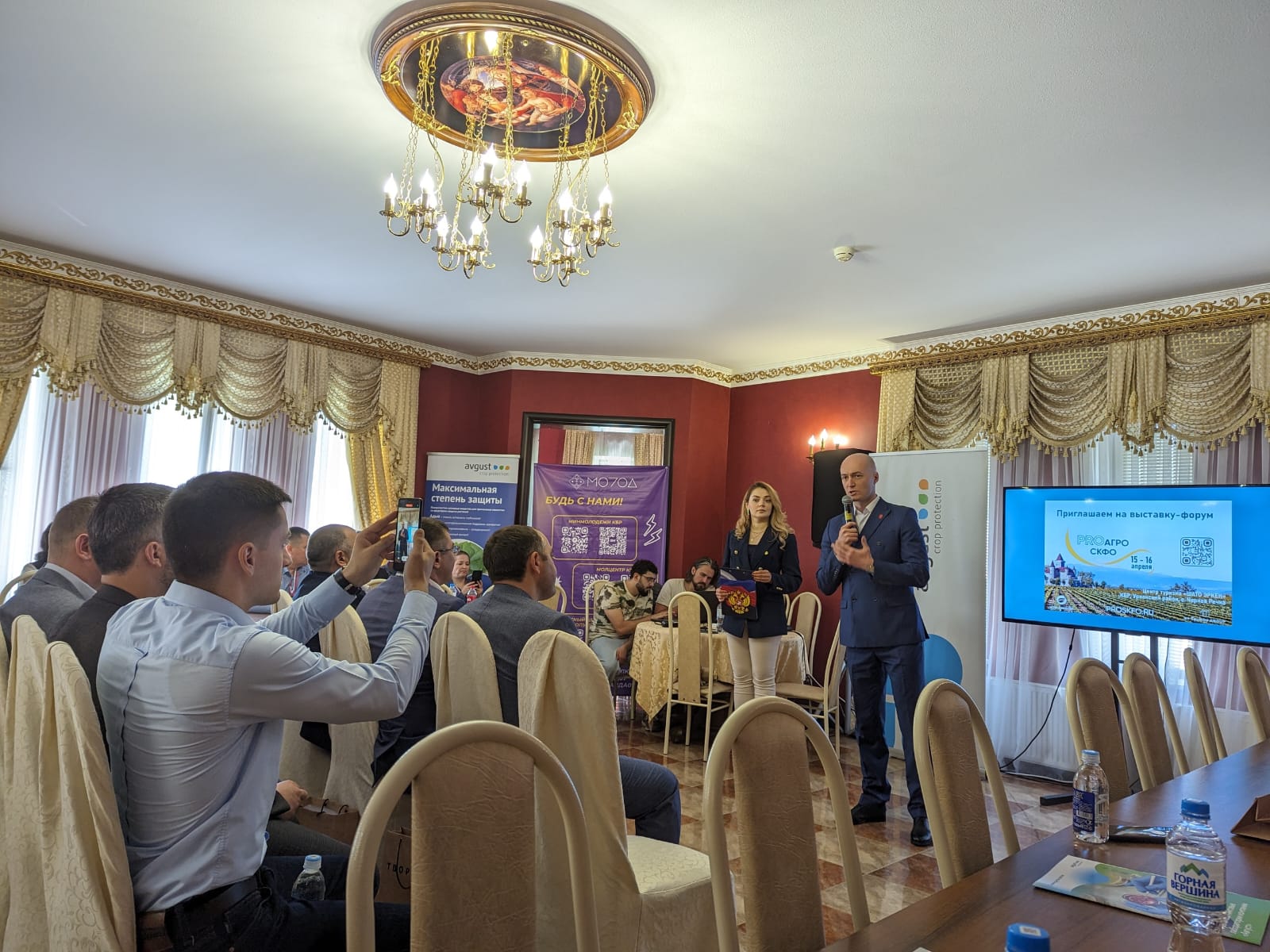 В конференц-зале замка выступали министр по делам молодежи КБР Азамат Люев, руководитель регионального отделения общероссийского общественно-государственного движения детей и молодёжи «Движение первых» в КБР Аслан Шипшев, руководитель коммуникационной группы «Теунов Групп» Мурат Теунов, представители крупнейшей российской компании по разработке и производству химических средств защиты растений - АО «Фирма «Август».